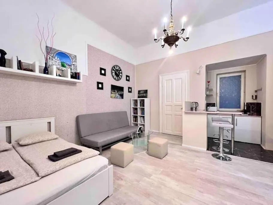 Deze 1-badkamer accommodatie ligt op een paar stappen verwijderd van de metrohalte Blaha Lujza tér.